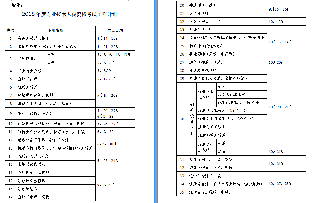 2018年度专业技术资格考试计划及有关问题通知如下: